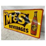 M&S Beverages Tin Advertising Sign, 1949, 24” x 12”