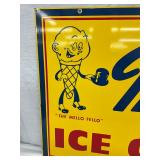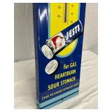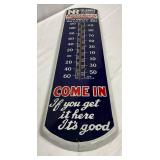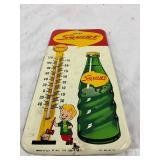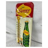 1961 Embossed Squirt Metal Thermometer Sign, 6″ x 13 1/2″