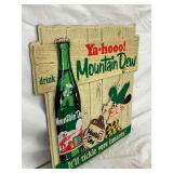 17 1/2″ x 17 1/2″ Mountain Dew Embossed Plastic Advertising Sign with Easel Back