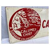 Calumet Chief Advertising Sign Made of Masonite, 36 x 12 Inches