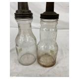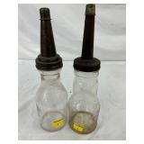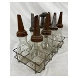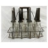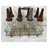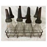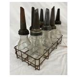Eight-Piece 1922 Handy Oiler Glass Bottles with Metal Carrier