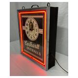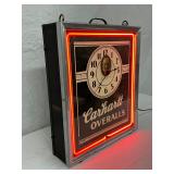 Carhartt Overalls Neon Advertising Clock by Neon Products Inc., 15in x 17in