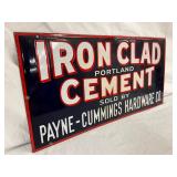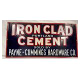 Iron Clad Cement 24 x 12 Porcelain Advertising Sign by Payne-Cummings Hardware Co