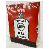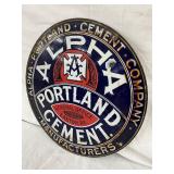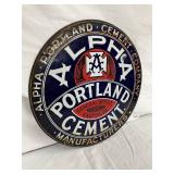 13-Inch Early Porcelain Alpha Portland Cement Sign with Heavy Shelving