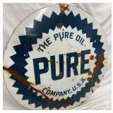 42-Inch Porcelain Double-Sided Sign for The Pure Oil Company, U.S.A.