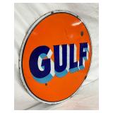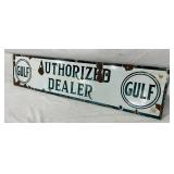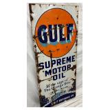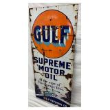 27 1/2 x 60-Inch Porcelain Gulf Supreme Motor Oil Sign, Gulf Refining Co.