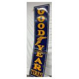 22 x 93 Inch Porcelain Goodyear Tires Vertical Sign with Winged Shoe Logo