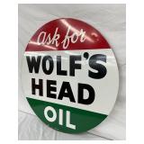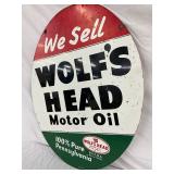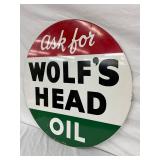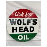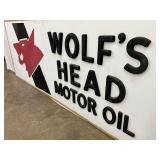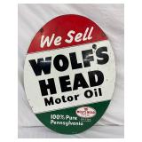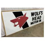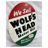 1960 Two-Sided Wolf’s Head Motor Oil Metal Sign, 23 x 30 Inches