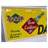 Self-Framed Embossed Metal Advertising Sign for Tom Collins Jr. Lemon Drink, 53 x 17 1/2
