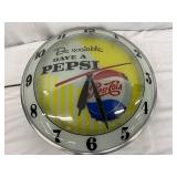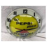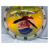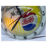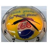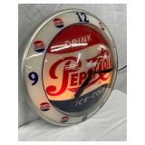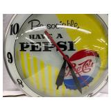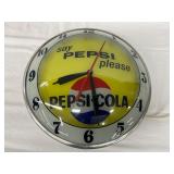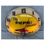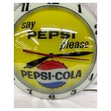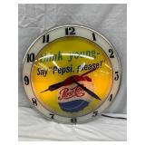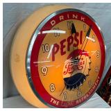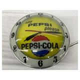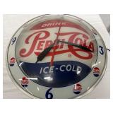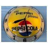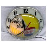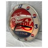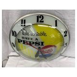 Pepsi-Cola Illuminated Metal Advertising Clock and Sign, 26×19 Inches