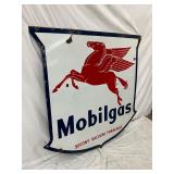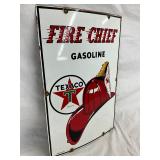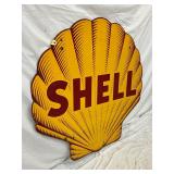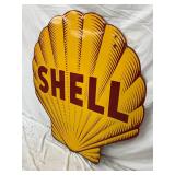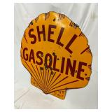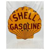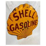 RARE 1929 DS PORC. CLAM SHELL GASOLINE SIGN