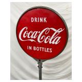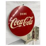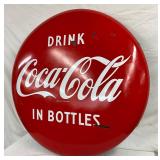 48-Inch Metal Coca-Cola Button Sign with Bottle Design