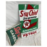 15×20 Early Blue Sunoco 200 Porcelain Pump Plate with Arrow Design