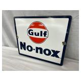 Gulf No-Nox Gasoline and Motor Oil Advertising Thermometer, 7.5 x 27 Inches