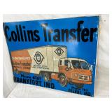 Collins Transfer 24 x 18 Metal Sign Featuring Moving Truck Design