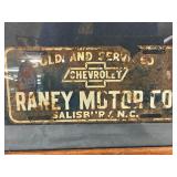 Framed 12” x 5” Chevrolet Dealer Plate from Raney Motor Co., Salisbury, North Carolina