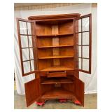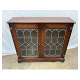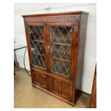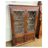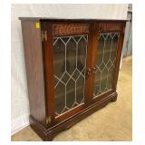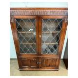 4FT. OAK LEADED GLASS DISPLAY CABINET