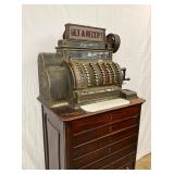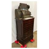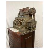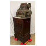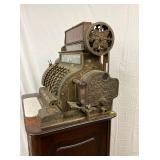 NATIONAL BRASS CASH REGISTER W/ ORIG. WOOD BASE