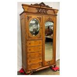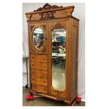 ORNATE OAK TRIPLE CURVED CHINA CLOSET