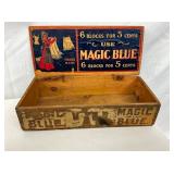 EARLY WOODEN MAGIC BLUE ADV. BOX
