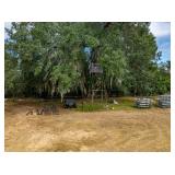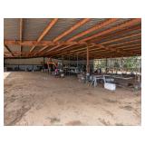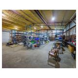 Various Irrigation Parts - Angle Iron, Pipe, Bracing Rods, Hard Hose Reel, Sheet Metal, Red Iron, Red Iron Poles, Fittings, Used Motors, Camper, Used Hoses with Sprinklers & Weights, & Motor