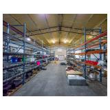 (2) Metal Stands with Contents - Various Sizes & Lengths of Galvanized Angle Iron, & Stacks of Angle Iron Behind Racks