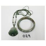 Carved Stone Bangle Bracelet & Buddha Necklace