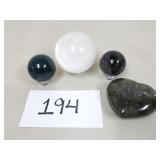 Polished Crystal Gemstone Orbs / Spheres and Heart
