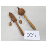 2 Tibetan Handheld Wooden Spinning Prayer Wheels