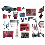 Snap-On collector items: wall clock, cup, knife, toolbox measuring tape