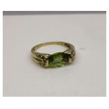 14K Gold Golden Yellow Beryl & White Diamond Ring