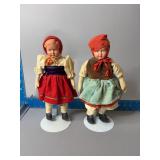 Two bisque dolls and an extra dress for each