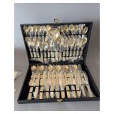 Flatware set, appears complete, light gold color