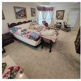 Antique Mahogany Four-poster Full Bed with Dresser and 4-drawer Mirror Vanity