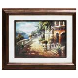 Wood Framed Floral Painting On Glass