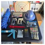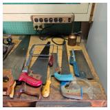 Vintage display table with Native American arrowheads circa early 1900s