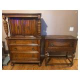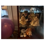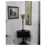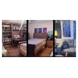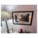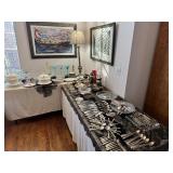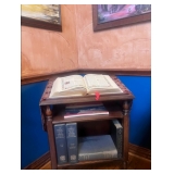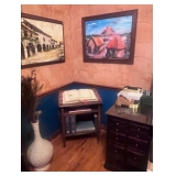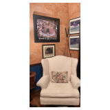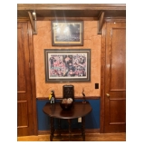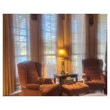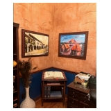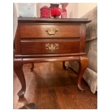 Living Room matching Love Seats,Queen Ann inn tables, black leather top vintage w/published Artist,