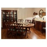 Mahogany Dining Table w/ two leaves, Six Chippendale Dining Chairs , buffet, chi