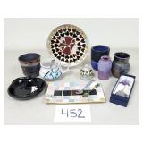 Polished Stone Skulls & Alien + Art Glass Dish