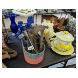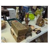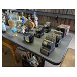 COLLECTIBLES AND DECOR INCLUDING MIKASA CRYSTAL TRINKET BOX, SILVER PLATE BABY CUPS, NORITAKE TINY DECORATIVE DOG MOTIF TEAPOT, AND MORE
