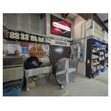 ALL ITEMS IN BACK WALL AREA MARKED OFF AS 2151 INCLUDING POWER METER SUPPLY BOX, GE300 LINE CONTROL STARTER BOX, SHELF BRACKETS, GROUND STAPLES, AND MORE