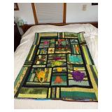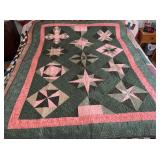 Machine stitched and custom quilted measures 81x67, flannel blocks
