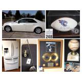 Variety of Collector Car Items: Lamborghini '98 Yellow on stand, Blue Convertible Music Box (Plays California Girl), Corvette Telephone (no cords,) & Pepsi Bank with key