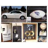 Variety of Items: Basket, Sunglasses, Wall Art pieces, Electric Power Strip, Mini Tape Recorded with additional tapes, Notebooks, Clock Etc.