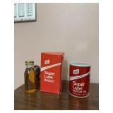 FS Superlube Motor Oil radio, appears to never have been removed from box/used and a bottle of Edison battery oil