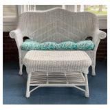 Wicker Table With Glass Top 42"X29" 4 Chairs With Cushions & Pillows