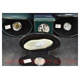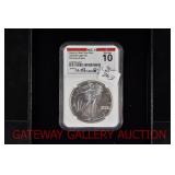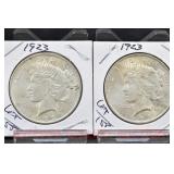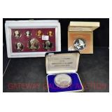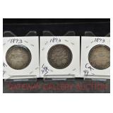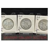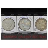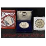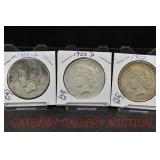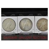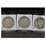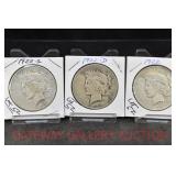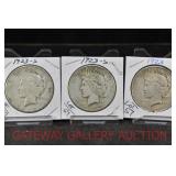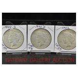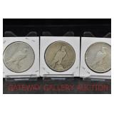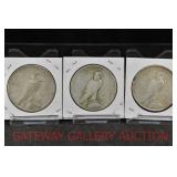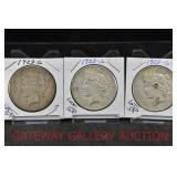 Public Auction Live & Online Coins, Currency & Stamps Will sell at GATEWAY GALLERY AUCTION located at 643 Kriner Rd, Chambersburg, PA on: Monday, Feb. 3 at 5 pm COINS/CURRENCY: Includes 310 catalogued lots including approx. 200 Morgan & Peace dollars, incl. 2 1921 Peace; rolls of silver; quality foreign coins; 12 gold pieces incl. 2015 W American Liberty high relief $100, 1oz.; 2023 W burnished gold $50 eagle; 1898 dbl. die 3 Indian princess $3 etc.; large cents; sterling rounds; American silver eagle; currency incl. series 1918 Washington $1 Chicago (G7)-UNC; silver medals; commemoratives & more. Scroll Down for catalog listing STAMPS: Collection of US stamps incl. full sheets/albums/plate blocks & much more. Approx. 25 lots to be described on the website. Stamps to be sold first! AUCTIONEER’S NOTE: A quality sale for both the collector and the investor. Coins/currency available for inspection from 3pm sale day. Coin catalog on website or call (717) 263-6512 or (800) 315-3265 to request listing. Online requests for condition reports must be made prior to day of sale. Preview Sale Day from 3 pm TERMS: Cash. Visa/MC/Discover accepted. In house bidders & online bidders using our website subject to 15% buyer’s premium discounted to 10% for cash or approved check. Live auction with live webcast stream bidding available through our website. Absentee and pre-bids accepted. Online pre-bidding available on HiBid. Statements made day of sale take precedence. CONDITION & GRADING NOTE: All items sold as-is, where-is, with no guarantee. Buyers are responsible to satisfy themselves as to condition of items. Every effort will be made to assist bidders, however YOU are the sole judge of condition. 1 (185) Cents: (148) wheat cents, 1909-1958; (37) memorial cents, 1959-1983 2 (3) Proof Sets: 1993; 2002; 2001, silver, 10-pc set 3 (2) Eisenhower Silver Dollars: 1971-S, 40% silver (Proof) 4 Prestige Set: 1990-S (Proof) 5 Silver & Bronze: (2) 1982-S George Washington 250th Anniversary Commemorative silver half dollar (Proof); (1) lead 25th anniversary .999 silver token; (1) lead 25th anniversary bronze token 6 Morgan Silver Dollar: 1889 (XF) 7 Morgan Silver Dollar: 1889 (XF) 8 Peace Silver Dollar: 1922 (MS) 9 Assorted Silver Coins: $2.65 face silver; 50¢ 40% silver; other US coins 10 (5) Mint Sets: (3) 1970; 1980; 1981 11 (10) Proof Sets: 1974; 1982; 1983; 1984; 1987; 1988; 1989; 1990; 1991; 1993 12 (9) Proof Sets: 1974; 1989; 1990; 1991; 1992; 1993; 1994; 1995; 2004 13 4-Pcs. Dollar Set: 2019-S American Innovation (Proof) 14 (5) Eisenhower Silver Dollars: 1971-S, 40% silver (Proof) 15 Prestige Set: 1990-S (Proof) 16 (2) Silver Proof Sets: 1992; 1994 17 (2) Silver Proof Sets: 1992; 1996 18 9-Pcs. Silver Proof Set: 1999-S 19 (2) Silver Proof Sets: 2009-S, 6-pcs.; 2017-S, 10-pcs. 20 Wheat Cents: 7.25 lbs. 21 (2) Morgan Silver Dollars: 1878 7TF 2R (F-W/Scratches), 1879(G) 22 (3) Morgan Silver Dollar: 1880 -D, 1881-O, 1882 (G) 23 (3) Morgan Silver Dollar: 1883, 1883-O, 1886-O (AG) (VG) (AG) 24 (2) Morgan Silver Dollar: 1880, 1884-S (VG) (F) 25 Morgan Silver Dollar: 1886(MS) 26 (2) Morgan Silver Dollar: 1889 (AU) 27 (3) Morgan Silver Dollar: (2)1889-O, 1890-O (AG) (G) (AG) 28 (3) Morgan Silver Dollar: (2)1890-O, 1891 (AG) (VG) (F) 29 (3) Morgan Silver Dollar: 1897-O, 1899-O, 1900-O (VG) (VG) (G) 30 (3) Morgan Silver Dollar: (2)1899-O, 1900-O (F) (F) (F) 31 (12) Proof Coins Conservation Coin Collection, Royal Mint (Series 1) 1974 - 1975 (12) Silver coins .925 avg. Lot 28.28 grams in display w/ papers + book. (Proofs) 32 (36) Sterling Rounds Wittnauer Nature Legacy Series, Sterling Silver, WT Avg 1.1 to 1.16 Toz 33 (3) Canada (Proof Sets): 1983, 1984, 1987 34 (4) Assorted Silver Coins: 2002 Canada 1952-2002 Golden Jubilee Celebration Elizabeth II .925 sterling dollar (proof); 1999 Canada $2 .925 silver w/gold-plated center (proof); (2) 2000 Canada 25 cent silver, fireworks, canoe full of children (proof) 35 Silver Coin: Canada Lunar Coin 2002 "Year of the Horse" $15, .925 Silver w/ gold insert 34 grams #53989 (Proof) 36 Silver and Bronze: 1992, 125th Canada Anniversary 13-coin Set; (1) $1.00 Bronze Coin (12) .925 Silver Quarters (proof) 37 (20) Panama Silver Coins: 1972 Balboas Sterling Silver .925 (4.255Toz) w/box and papers (proof) 38 (2) Proof Sets: 1990 (6) Coin Set, Silver $2.00+$1.00 coins New Zealand 1994 (6) Coin Set w/silver outer-ring 50-cent coin New Zealand 39 (2) Proof Sets: 1982 7-coin set w/silver dollar New Zealand; 1988 7-coin set w/silver dollar New Zealand 40 Commemorative Sterling Silver: 2003 Lord of the Rings One Dollar Sterling Silver W/Papers and Box New Zealand (Proof) 41 (2) Large Cents: 1837 & 1839 (F) (F) 42 (3) Large Cents: 1844, 1845, 1851 (G) (AG) (G) 43 (3) Large Cents: 1853, 1855 UR 5's, 1856 (F) (F) (F) 44 (2) Large Cents: 1858 LL & 1858 SL (VG) (VG) 45 (11) Assorted Coins: (2) 1859, 1863, 1903, 1904 Indian Cents (AG-G) 1864 Two Cent Piece (F), 1865 & 73 Nickel 3 Cent Piece (F) (AG), 1867 & (2)1868 Shield Nickels (AG) (AG) (G) 46 (3) Walking Liberty Silver Half Dollars: 1918 S, 1919 D, 1939 (AG) (AG) (AU) 47 (3) Columbian Expo Silver Commemorative Half Dollar: (3) 1893 (F-VF) 48 (3) Rolls of Silver Half Dollars: Kennedy 40% Silver Half Dollars 49 (3) Rolls of Silver Half Dollars: Kennedy 40% Silver Half Dollars 50 Gold Proof: 1639-1989 Sainte-Marie Canada $100 Gold Papers and Box included 51 Peace Silver Dollar: 1921 (VF) 52 (3) Peace Silver Dollars: 1922, 22 D, 22 S (F) (VG) (VF) 53 (3) Peace Silver Dollars: 1922, 22 D, 22 S (XF) (VF) (VG) 54 (3) Peace Silver Dollars: 1922, 22 D, 22 S (VF) (VF) (F) 55 Peace Silver Dollar: 1922 (MS) 56 (3) Peace Silver Dollars: (3) 1924 (F) (VG) (VF) 57 (3) Peace Silver Dollars: 1923 & (2) 1923 S (VF) (VG) (VG) 58 (3) Peace Silver Dollars: (3)1923 S (F) (F) (VG) 59 (3) Peace Silver Dollars: 1924, 1926 D, 1926 S (VF) (F) (G) 60 (2) Peace Silver Dollars: (2) 1925 (MS) 61 (127) Silver Nickels: Jefferson 35% Silver War Nickels 62 (100) V-Nickels: 