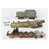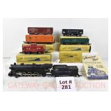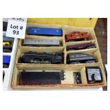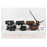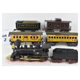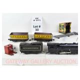 29 MARX O GAUGE: 898 Loco (Paint Loss), NYC Wedge Tender, 9100 UP Boxcar, 256 Niacet Tanker, (2) 13079 LNE Hoppers, 347000 PRR Gon, 17899 T&P Gon, 254000 B&O Gon, 20102 NYC Caboose