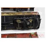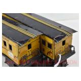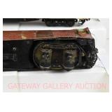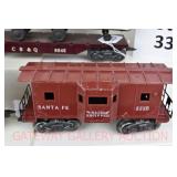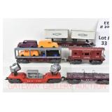 33 MARX O GAUGE: 5545 CB&Q Flat/NYC Trailers, 4581 BKX Dual Searchlight/Generator (No Lenses 1 Brakewheel Missing), 2225 Santa Fe B/W Caboose (No Stack or Antenna and Scratches)