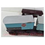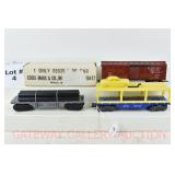 1 MARX O GAUGE: 51100 Southern Blue Autorack/4 Autos, 5543 Cities Service Flat/2 Tanks, 5545 CB&Q Flat/2 Burlington Trailers